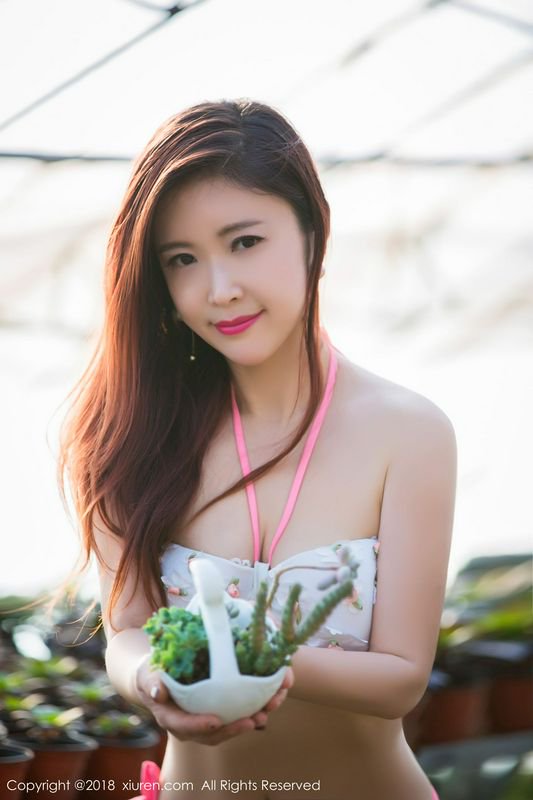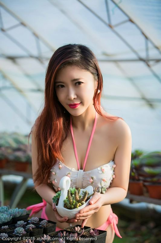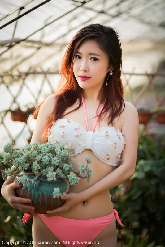 西希白兔日系写真温室里的比基尼诱惑